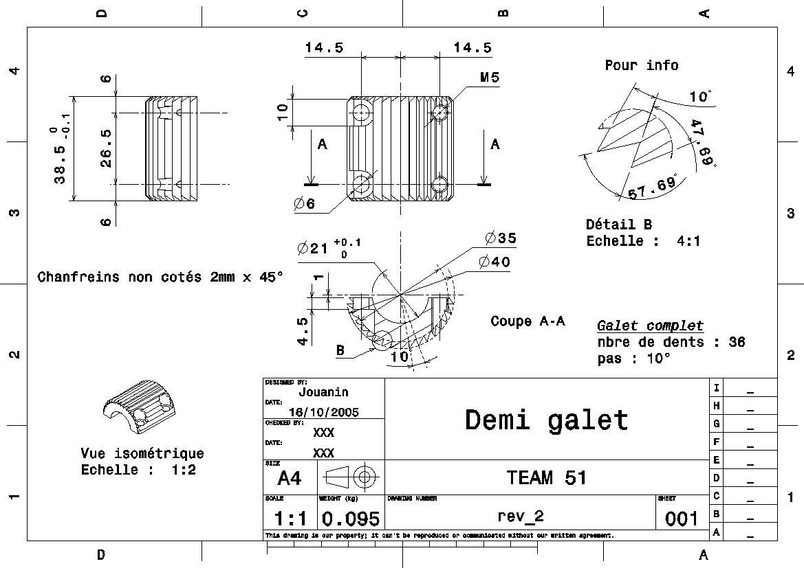 ce galet a été usiné au fil ce qui a permis de choisir des angles de dents particuliers. La photo va suivre...