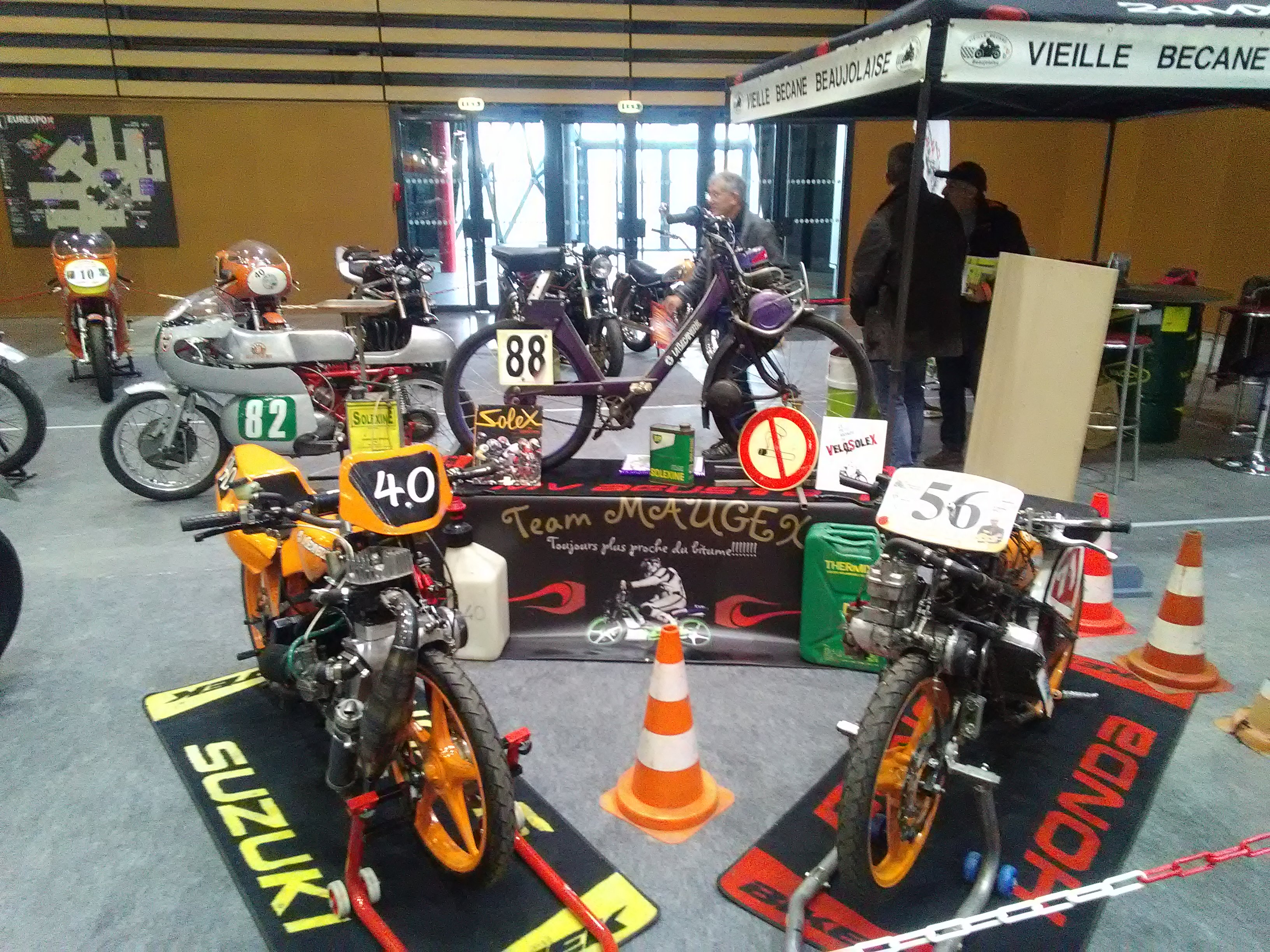 J'ai pu voir des 2 roue impressionnant et de ouf, mais aussi les nouveautés des grandes marques. Le monde électrique est bien présent. Malgré un mauvais emplacement du stand (on prend ce que l'on nous donne quand on paie pas) les gens faisait le toùr des motos du stand, mais dès qu'il arrivait au niveau des solex ils s'arrêtaient prennait des photos, posait des questions. J'ai fait de super rencontres, comme les meules de Savoie qui mon proposer d'exposer les solex avec eu l'année prochaine, je pense que l'on sera bien mieux avec eux.