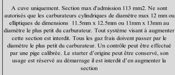 _Tout système visant à augmenter la section de passage au niveau du diamètre le plus petit du carburateur est interdit.