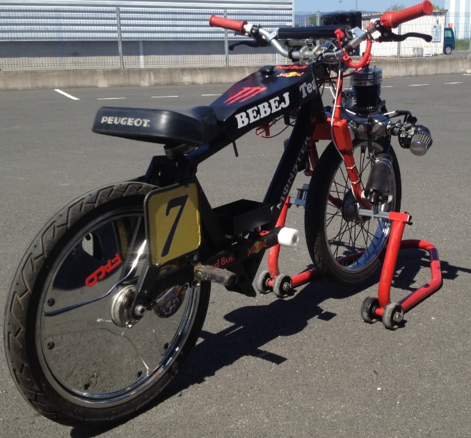Et puis-je dis aussi qu'il y a des jeunes qui risquent peut être d'avoir mal aux poignets, vu le guidon dont les poignées justement,"rebiquent" vers le haut...à moins que cela soit fait exprès pour bien écarter les coudes et empêcher des furieux (HARRONDO?)de passer dans le sinueux?