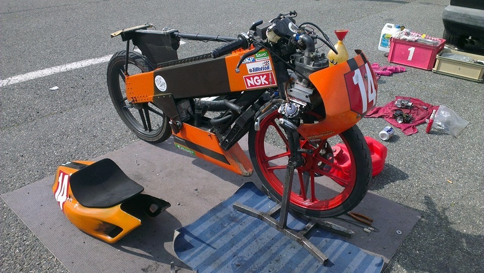 Le tiolex (oa num85) a connu quelques déboires: ergot baladeur du piston , on y a donc collé un de mes anciens haut moteur d'origine pour qu'il finisse la course (merci à joel pour la mécanique). De belles bagarres à la clé notamment avec le num 64 (nouvel oa ).