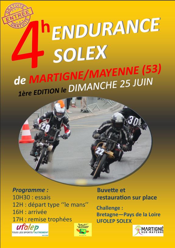 Maintenant que le RnS, un des événements majeurs du Solex Breton-Ligérien est passé, nous allons lancer ce prochain week-end les inscriptions pour Martigné sur Mayenne le dimanche 25 juin.