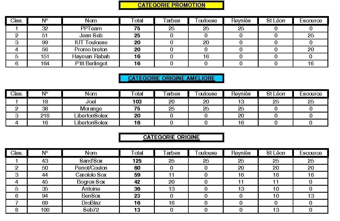 Classement final par catégories