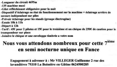 j'avais dans l'idée (si je trouve du monde pour le mettre en place) de mettre un véhicule dans le bas de la grande descente afin de ne pas à avoir a pousser toute la côte de la boissière, il pourrais ramener pilote et machine directe au stand durant les essais et la course
