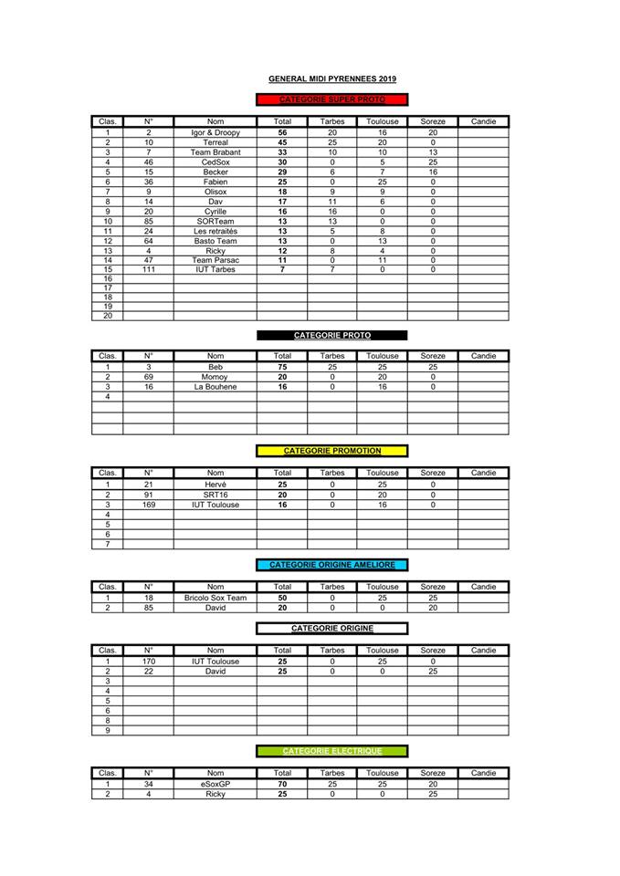 Classement de Soreze avec l'attribution des points et le classement général Midi-Py après la course de Soreze