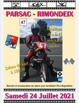 Bonjour à tous, dimanche dernier le solex team parsac a réalisé son AG. Nous avons décidé d organisé nôtre 8ème édition des 6h solex et mobs le samedi 24 juillet 2021. :salut: :P