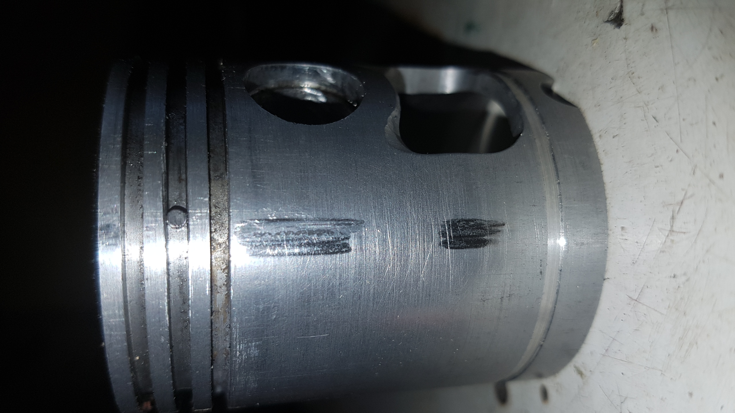 Apres avoir monté un piston neuf sur mon cylindre, il demarre bien mais s arrete a froid au ralenti. Le moteur s arrete net. J ai démonté et vu ces traces. Qu en pensez vous?