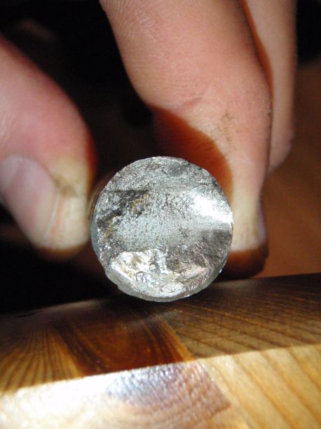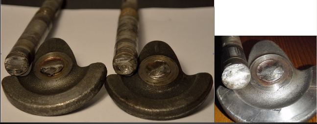 -Une fissure (aspect granuleux et rouillé) se créée coté maneton dans la direction qui correspond à 36° après le point mort haut et se propage (vaguelettes visibles, perpendiculaires à l'axe de symétrie de la déchirure).