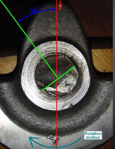 -Une fissure (aspect granuleux et rouillé) se créée coté maneton dans la direction qui correspond à 36° après le point mort haut et se propage (vaguelettes visibles, perpendiculaires à l'axe de symétrie de la déchirure).