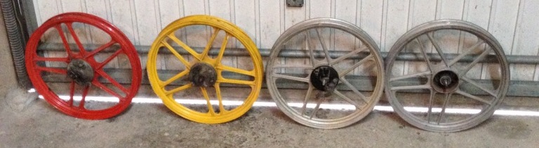 Vends en lot ou au détail 6 jantes Avant grimeca de Peugeot 103 clip en très bon état.