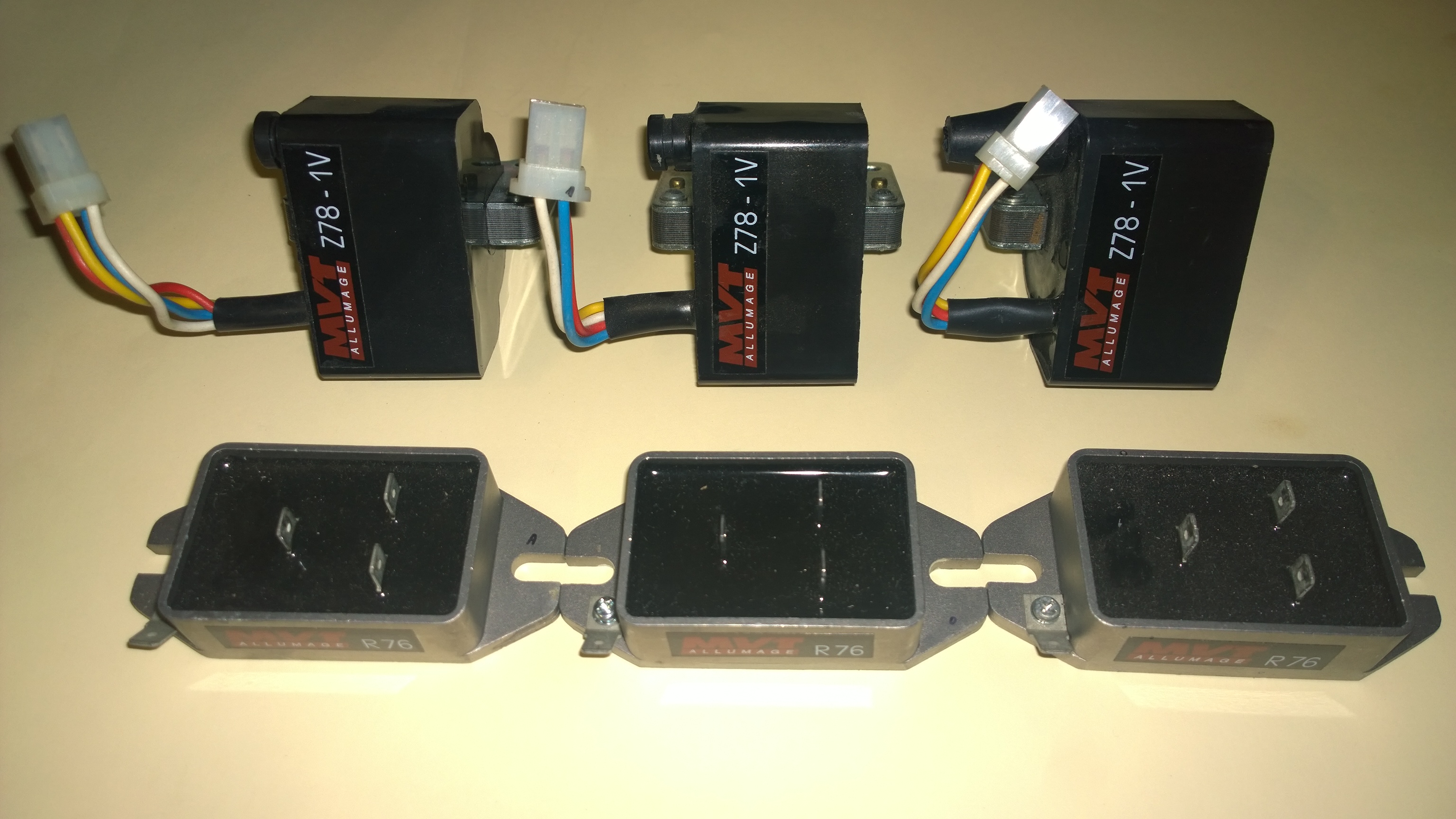 Du coup je lui ai repris d'autres allumages pour remplacer ceux qui ont été endommagé et j'ai maintenant un belle collection de bobines et régulateurs.