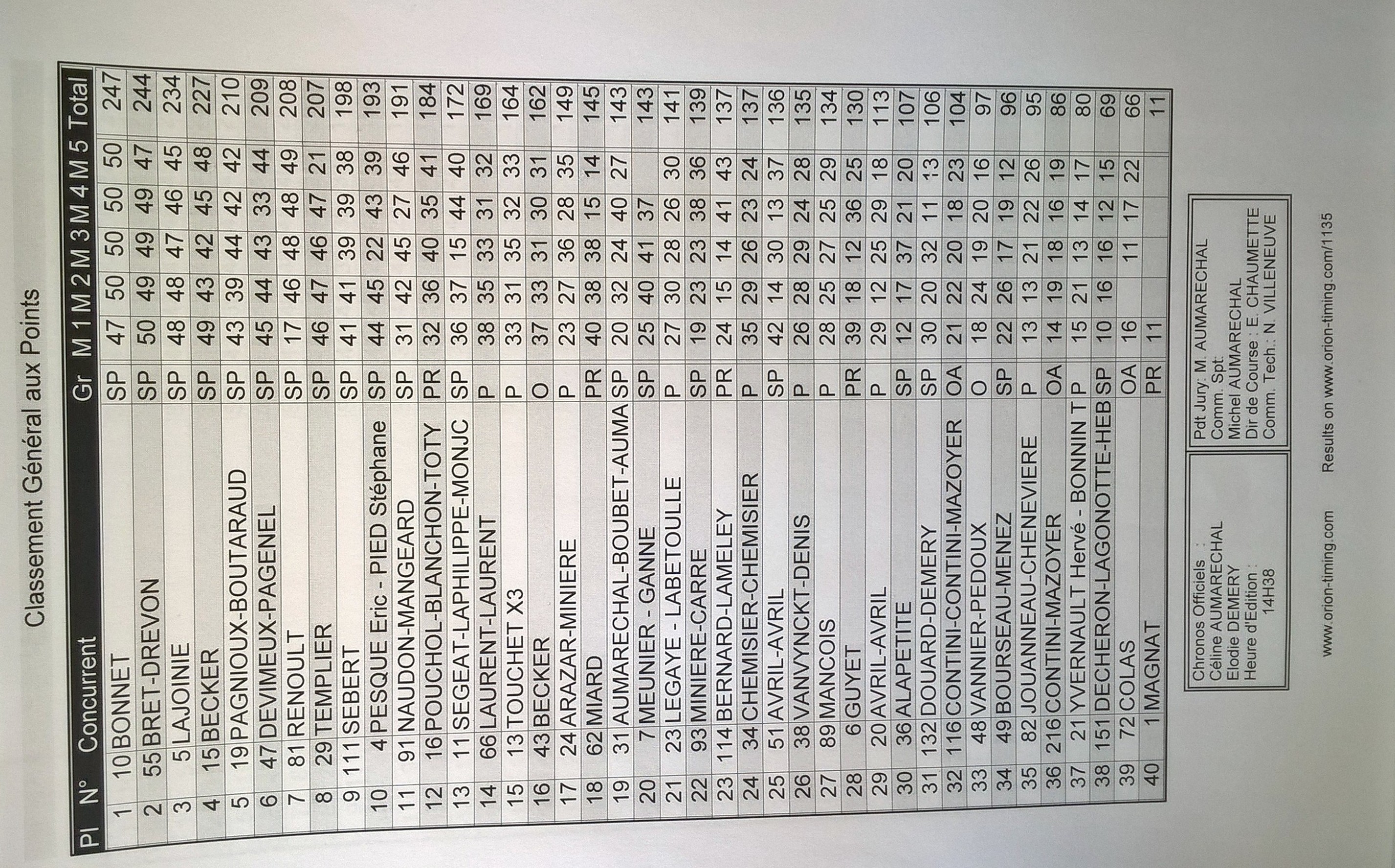 J'ai été voir le site Orion timing et les résultats ne sont pas encore en ligne.