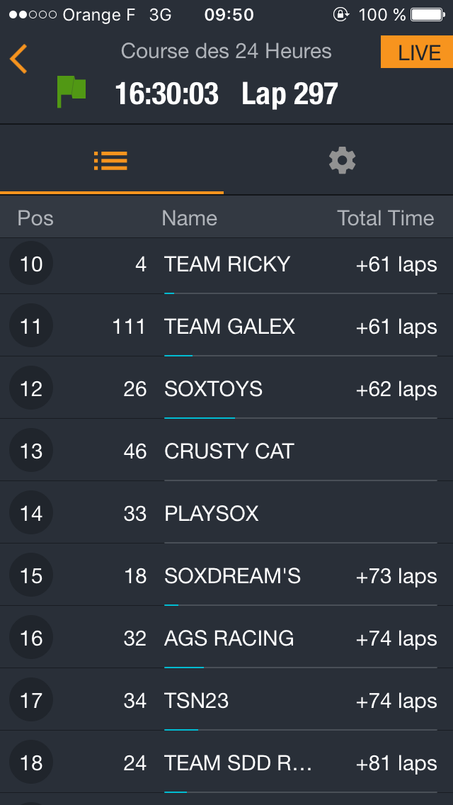 Une simple photo de classement (à chaque heure dans l'idéal), serait déjà très bien...
