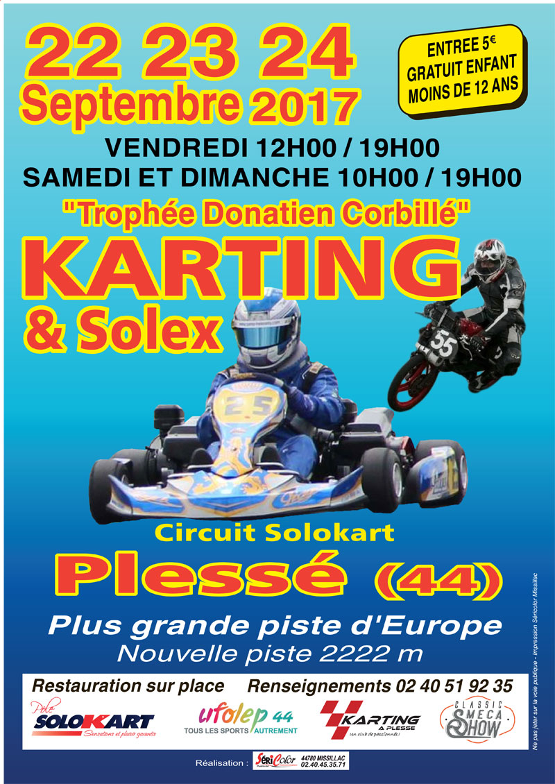 - Entrée payante (Avec de nombreuses animations autres que Solex) à 5€ et gratuit pour moins de 12 ans. 5 bracelets offerts par inscription pour pilote, mécano et accompagnateurs, remis sur place par l'organisateur.