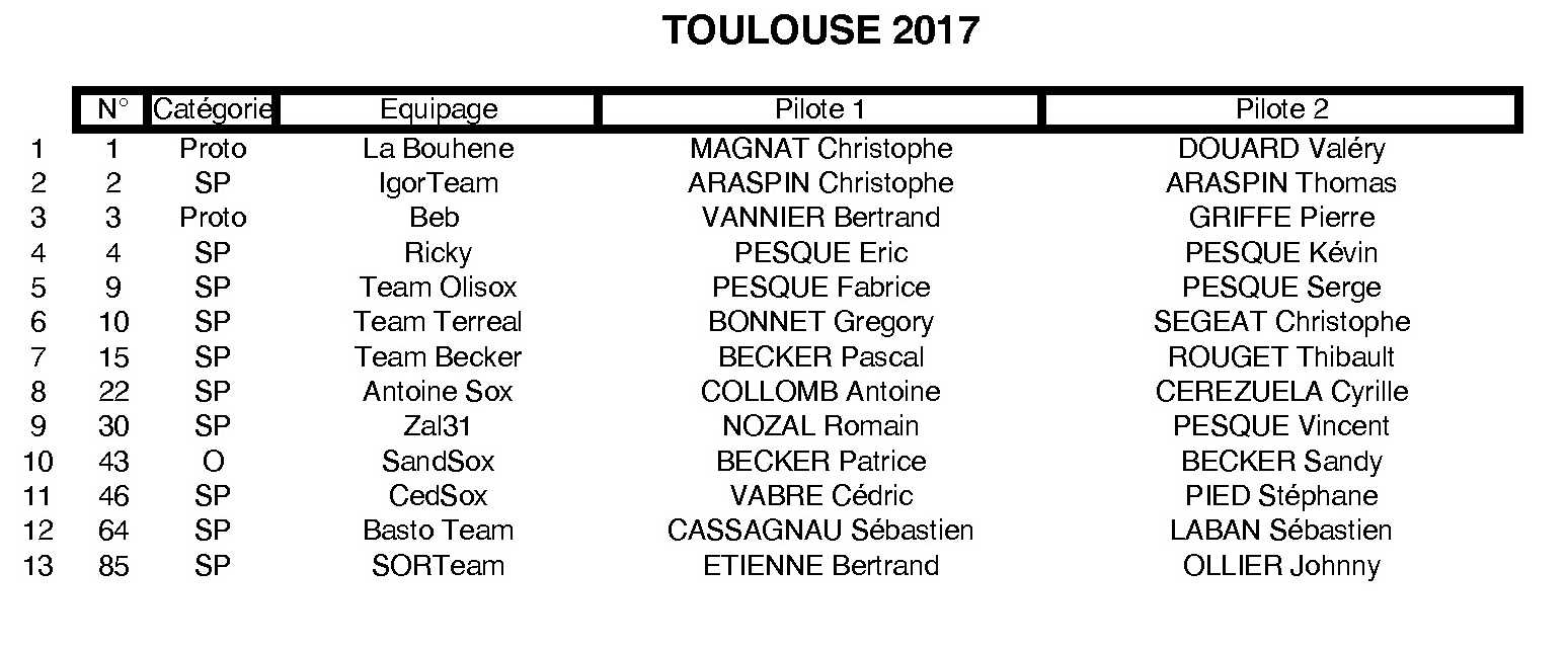 Liste des engagés à ce jour et à ma connaissance à Toulouse
