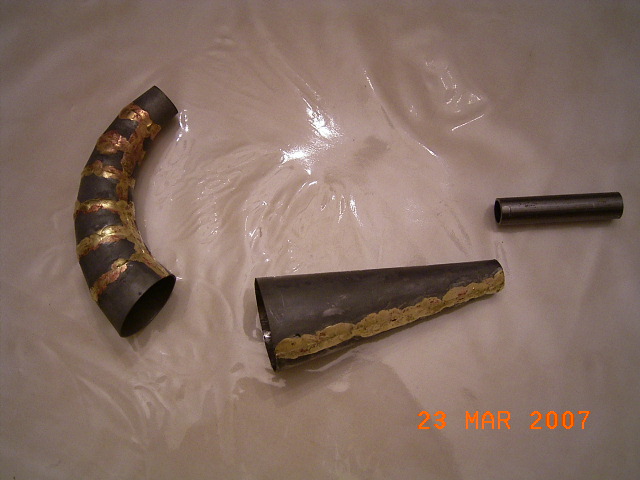 Réalisé à partir d'une tôle de 1 mm d'épaisseur. Logiciel de calcul : http://www.mh-aerotools.de/airfoils/javapipe_main_en.htm Logiciel pour dessiner et imprimer à l'échelle 1:1 les développés plans : http://www.softpedia.com/get/Science-CAD/Cone-Layout.shtml Chaque élement le constituant ont été découpés au bocfil, roulé à la main puis brasés. Pot monté souple et rotule. Environ 20 h de travail ont été nécessaires. A vous de jouer !
