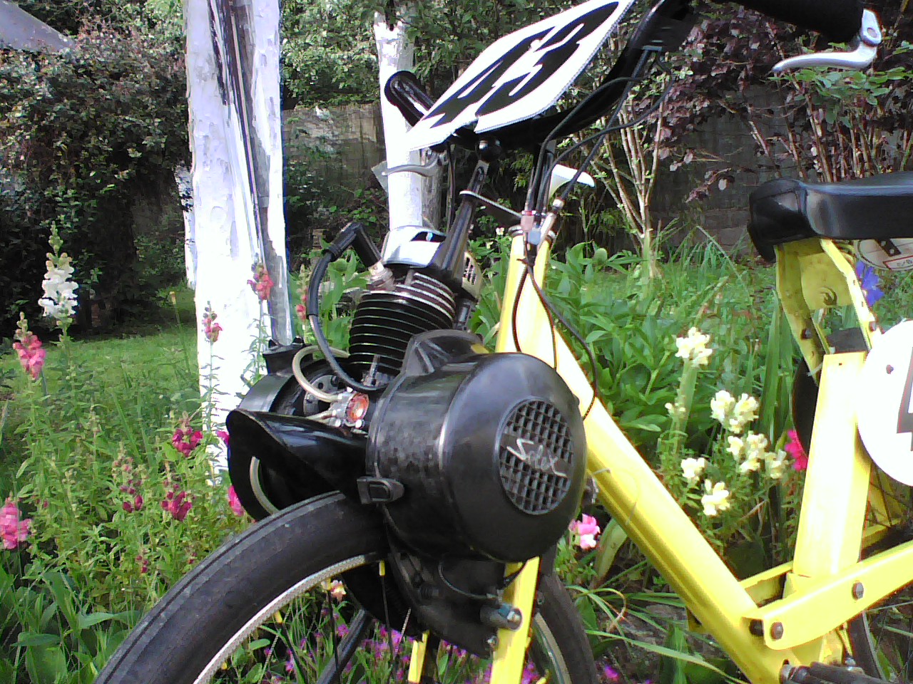 cadre 3800, culasse 1700 rabotée, carbu 9mm "venturi", gicleur réglable, cylindre 2 transferts élargis, 2 turbos boosts, tuyaux essence montés souples, cache filtre à air ajouré, piston préparé 2 segments, bielle allégée et polie