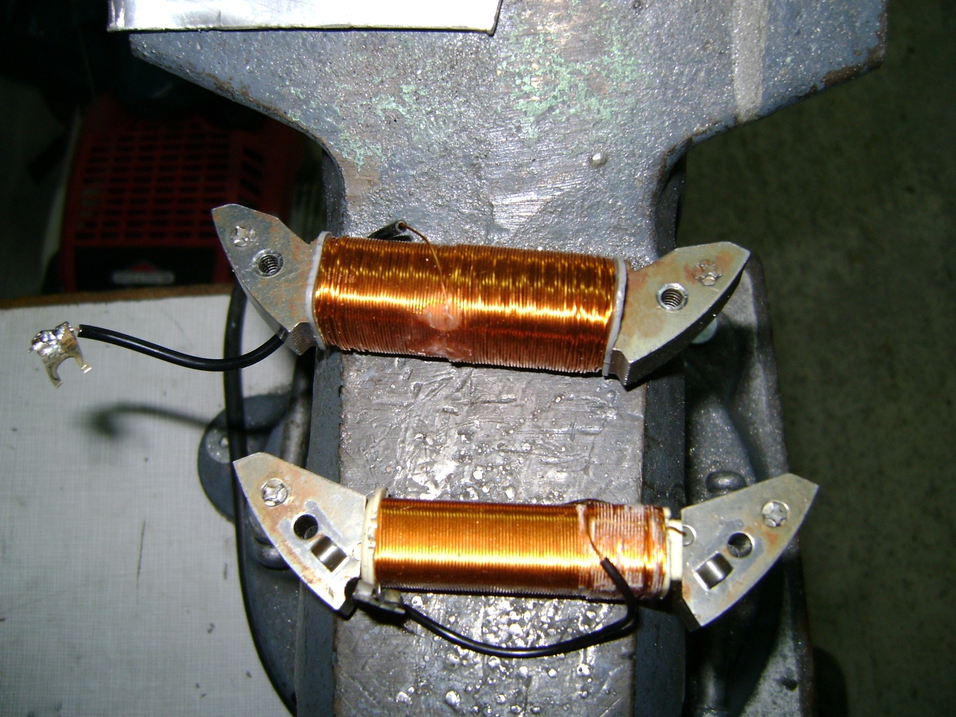 bobine d'éclairage, en bas : d'origine, en haut : avec augmentation du nombre de spires