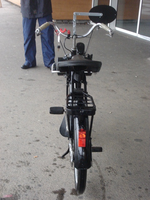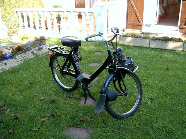 Voici ma vieille dame de 1962, un mixage entre un 2200 (le moteur) et un 3800 (le cadre). Entre ~40/~50 Km/h sur sol plat (rien de violent mais plutôt fun), ~60 Km/h en descente.