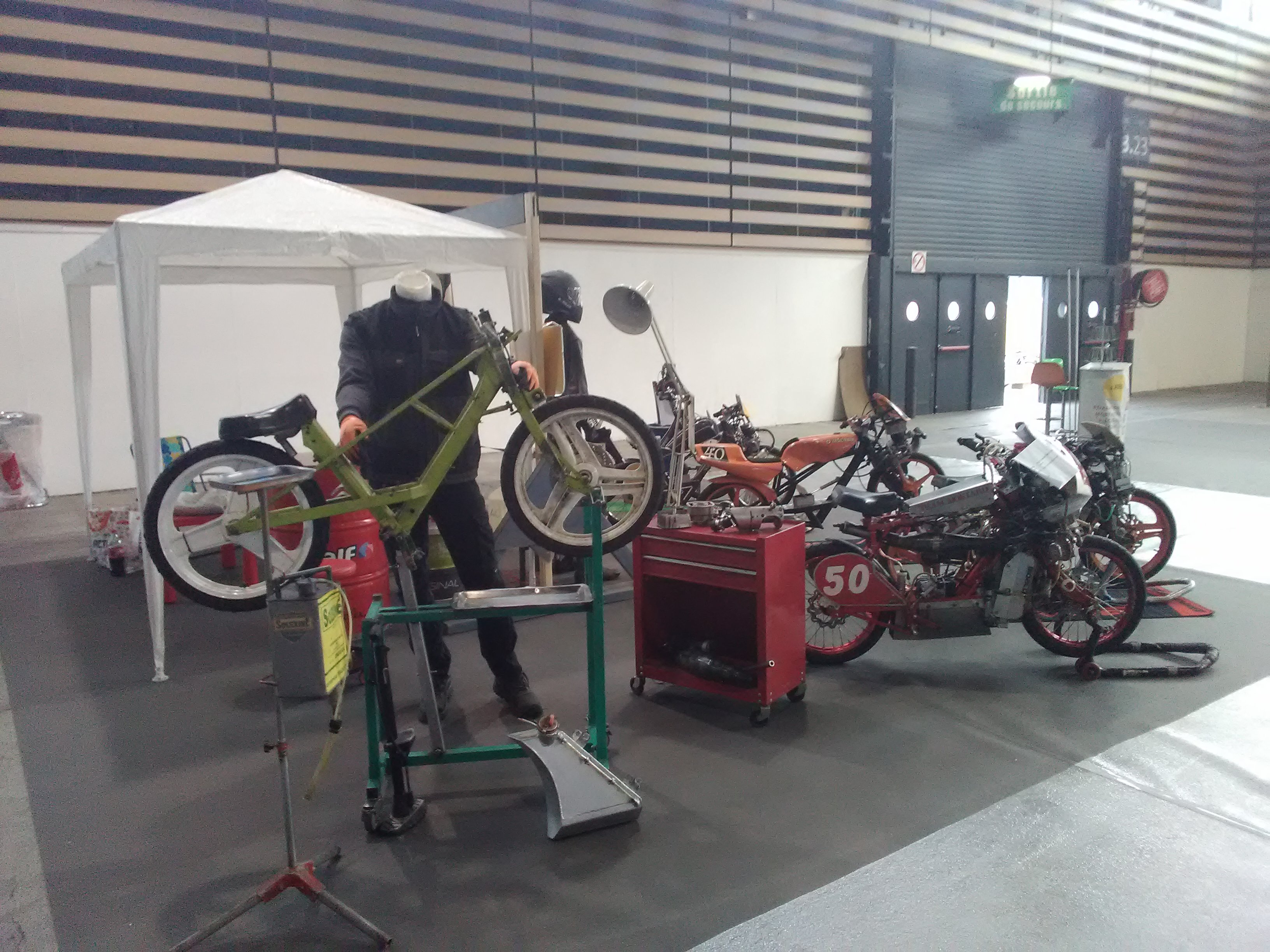 le wekk end du 2 au 6 mars nous avons exposé nos solex de compétition ainsi que nos 2 roues de collection, on a passé 5 jour tres sympatique, on a rencontrer et discusser avec beaucoup de gens, nous avons eu les visite de therry morel du team moktar(qui nous a preter son sox) ainsi que sebastien lajoini du team grandjoie, nous avons eu aussi eu aussi d'ancien pilote du bol d'or, et du sud, et meme des gens de nouzier. une aventure a refaire!! j'espère avec un peu plus de solex de compétition!! :wink: