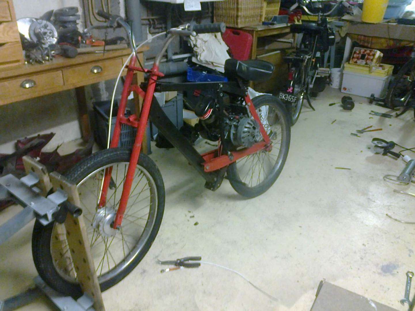 Comme base on a un cadre, découpé pour mettre un moteur a l’arrière, on un moteur 3800 qui roule bien et on n'est pas des noobs en mécanique :p on cherche à faire un moteur type promo car c'est ce qui semble le plus a notre portée niveau budget!