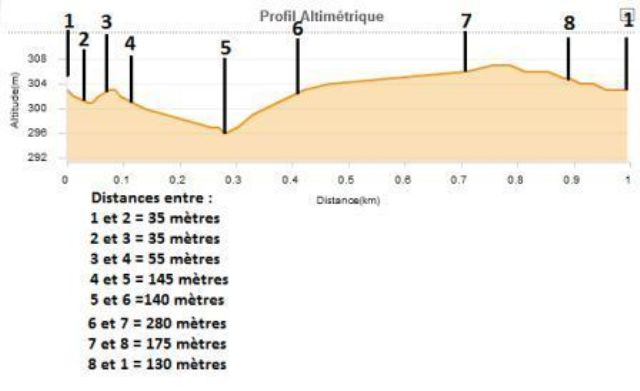 Voici le tracet du circuit avec les distances et le dénivelé du circuit ,si ça peut aider certain a configuer leur engin ou bien préparer leurs mollets