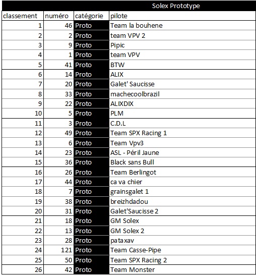 BLACK MAMBA a écrit:Bonsoir, même si cela n'a aucune incidence pour ma part ce classement n'est pas juste, cela reflète les problèmes de positionnement sur la grille de départ, dommage. A chaque pré grille cela avait pourtant été évoqué.