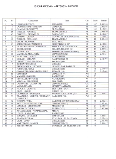 Felicitations au vainqueur le team JAUNOTTE pour cette victoire apres tant d'année a courir aprés.Les autres concurrents n'ont pas démerité car la lutte a été serrée sur les 4H.