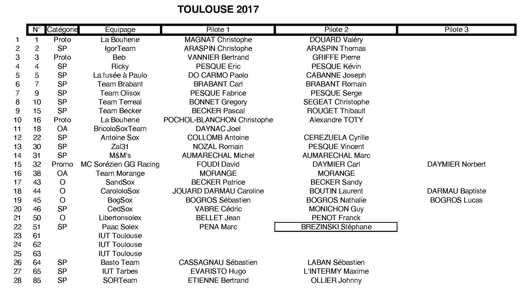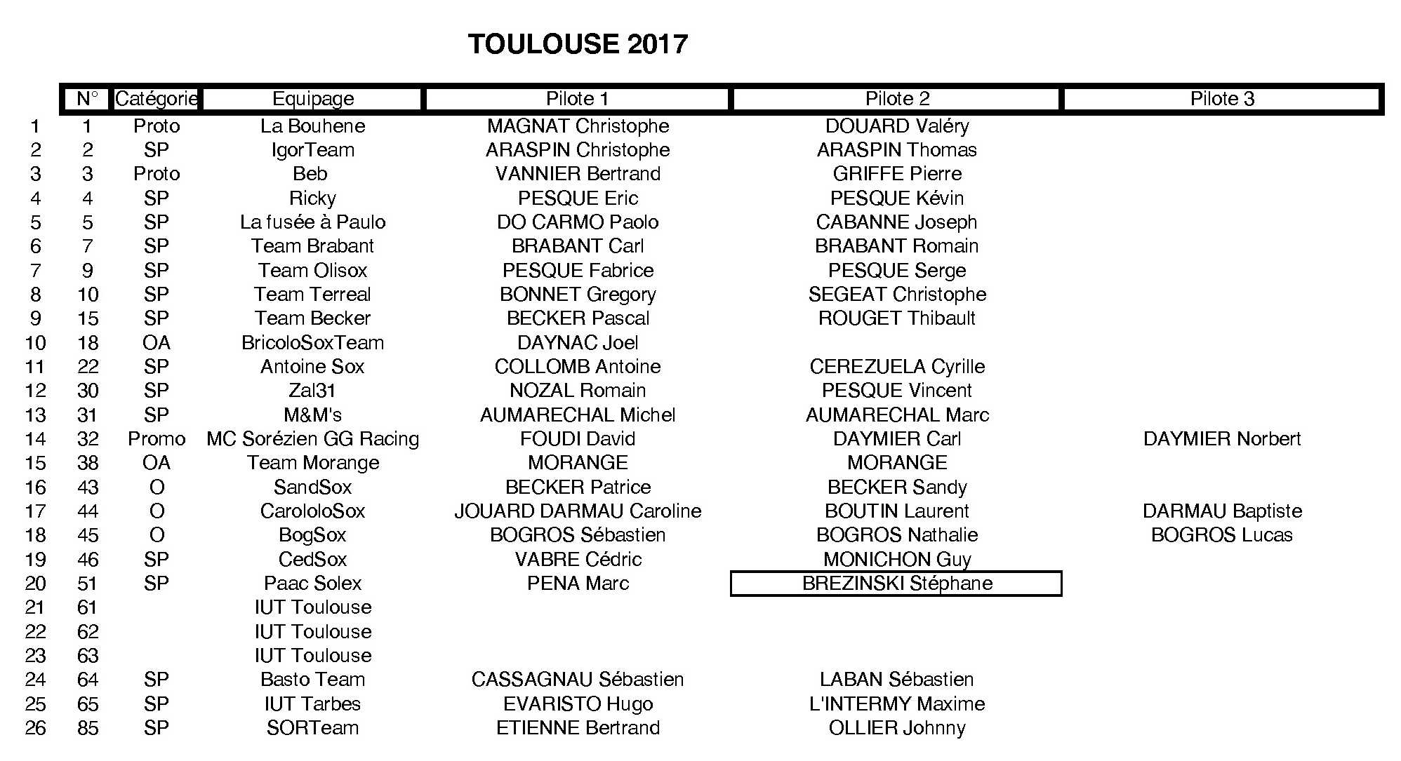 Liste des engagés à ce jour et à ma connaissance à Toulouse