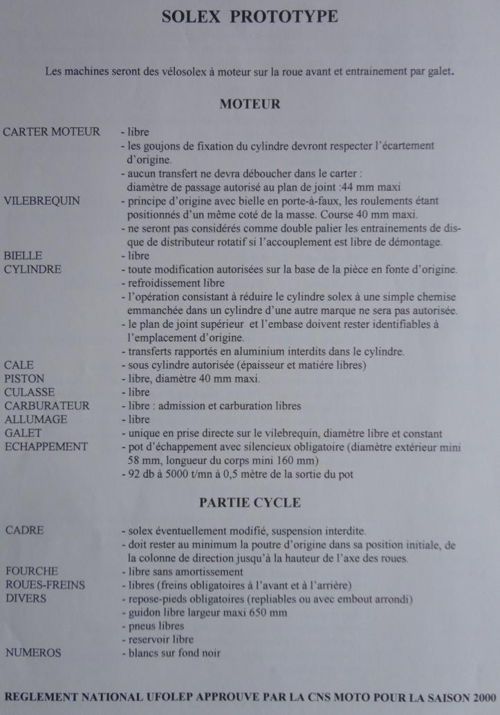 Je retrouve dans mes archives la fiche du réglement PROTO de 2000 qui en fait n'avait pas changé depuis 1994.