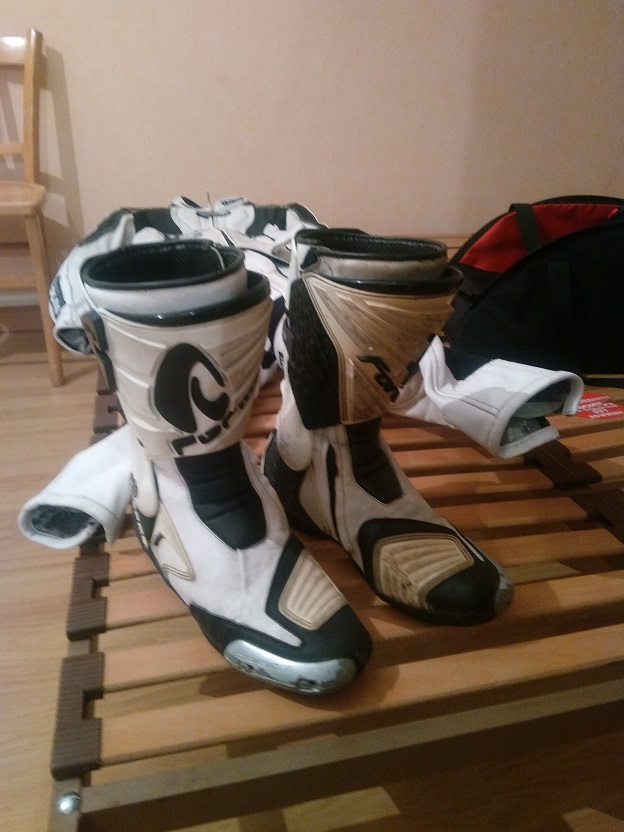 A vendre combi cuir "tschul" taille 52 plus botte moto "forza" taille 44.