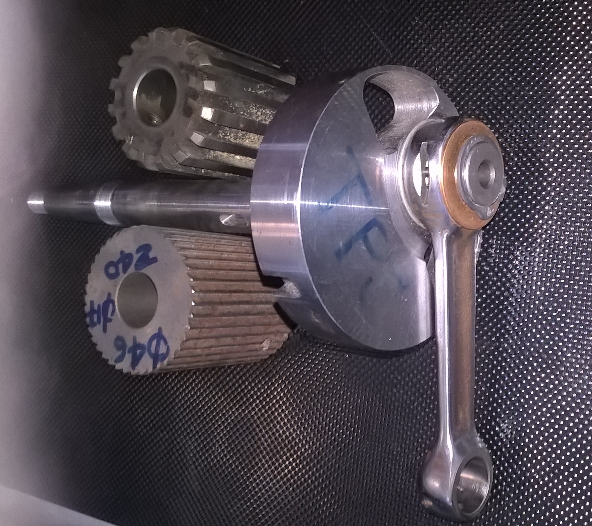 Vends vilo neuf type moteur Ricky soie de 17 ,maneton de 18 avec 1 galet neuf D46 ,40 dents et un galet quasiment neuf D44 denture carré idéal sur le sec (accroche et ne manche pas de pneus) et une bielle de 85 d occasion.