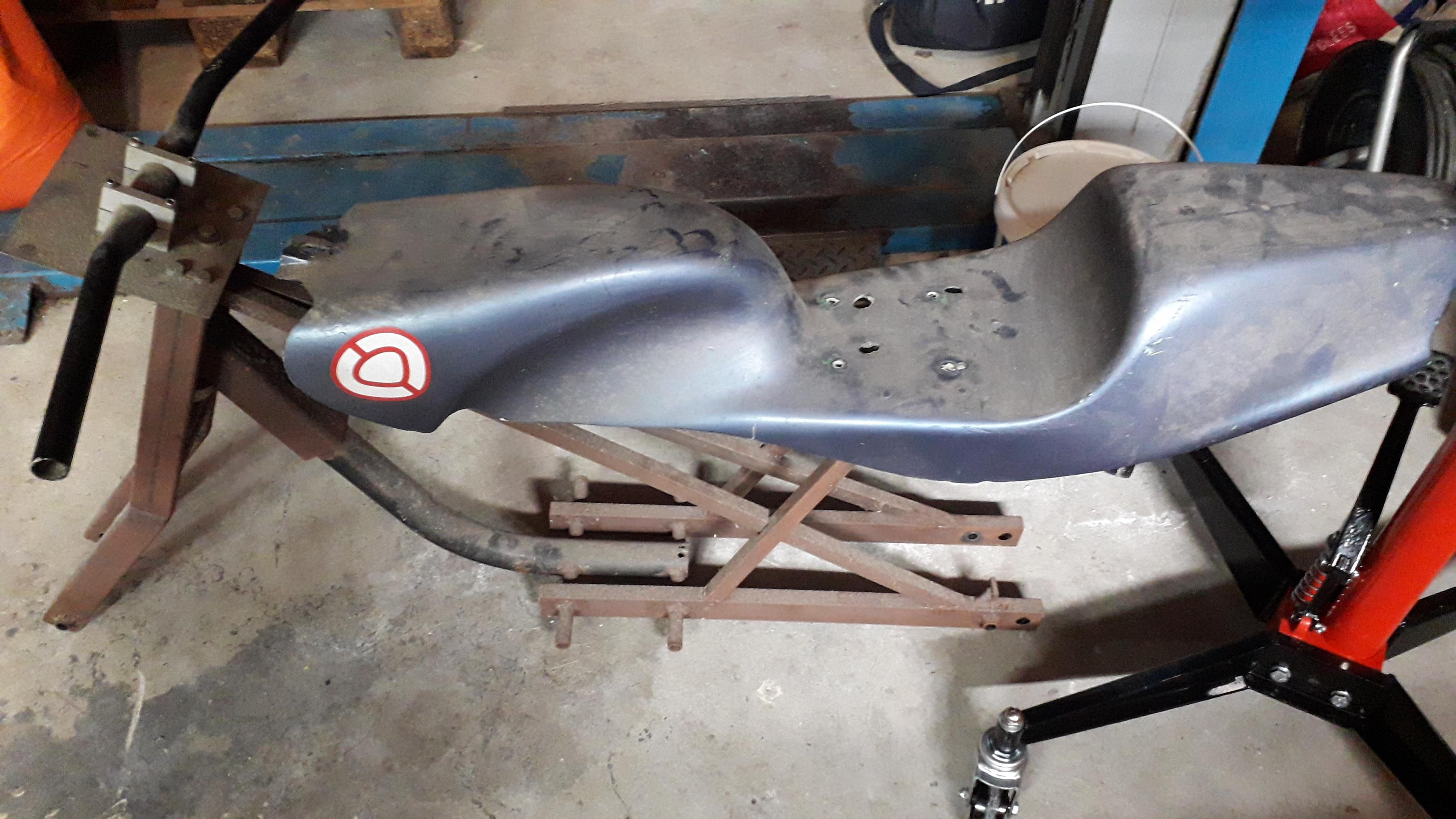 Je donne un cadre et une coque que j'ai commencé à préparer il y a plus de 10 ans, mais je n'aurais jamais le temps de me consacrer à ce projet. Il y a encore énormément à faire dessus, le tube de fourche possède déjà un renfort.