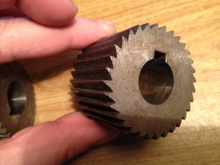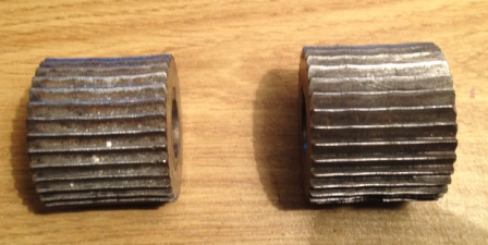 galet 1 : Ø44, Ø18 intérieur et largeur 36 mm avec rainure de clavette (6mm) et vis de pression M6 et 32 dents (un peu usé)