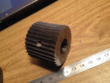 galet 2 : Ø46, Ø18 intérieur et largeur 38 mm avec rainure de clavette (6mm) et vis de pression M6 et 32 dents (quasi neuf)