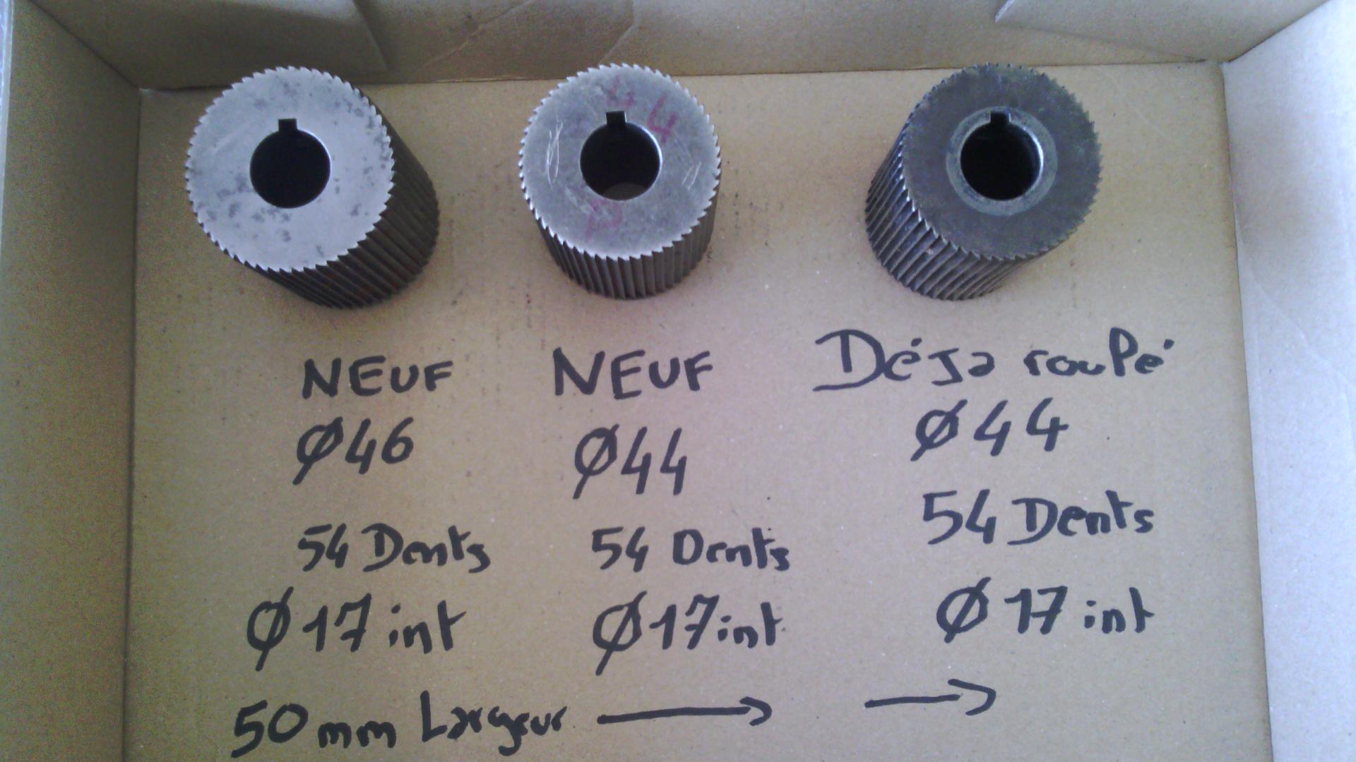 Michel a écrit:Je vends des galets de largeur 50 mm ,de diamètre intérieur de 17 mm avec une rainure de clavetage de 5 mm et aussi avec trou pour vis pointeau avec denture style tabouret et de 54 dents .