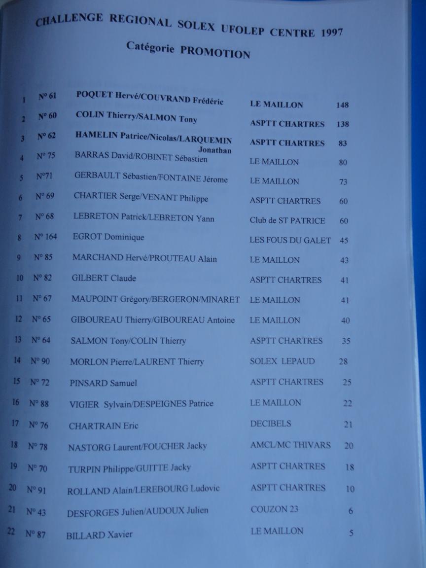 Challenge UFOLEP du Centre 1997 catégorie PROMOTION