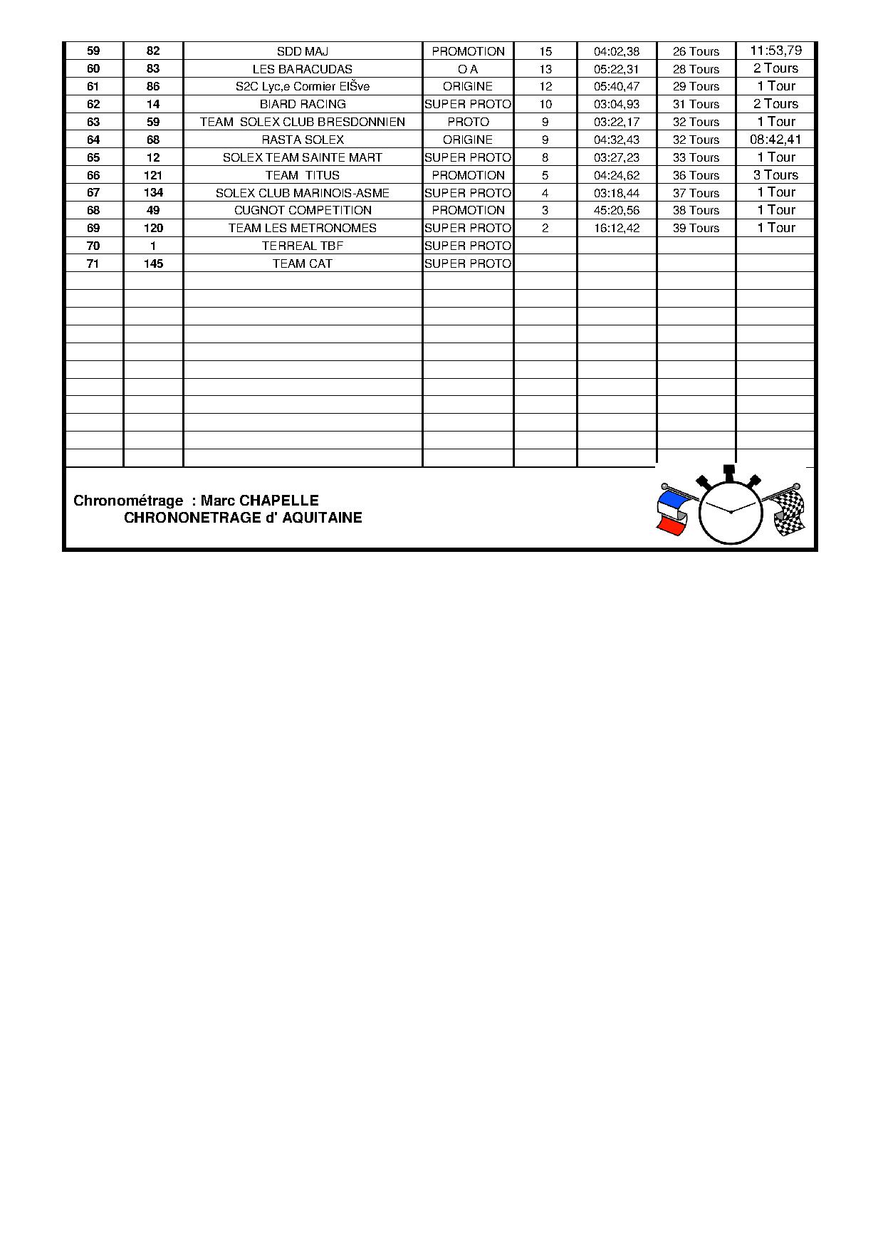 Alors pour chronométrage d'acquitaine pas possible car le wifi passe difficilement...... nous sommes à la campagne !!! alors voici la 3e heure