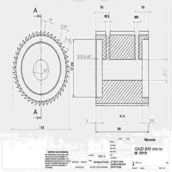 A tous, Messieur je sors de chez un tourneur fraiseur je lui ai montré mon plan pour une fabriquation de galets. Il m'a fait un devit d'une vingtaine de galet à un prix de 50 euros le galet sans traitement. Le traitement je le fait faire par une autre boîte. Comme tout le monde sait, plus il y a de galets, plus le prix du galet baisse. Je vous laisse le plan si dessous, plus vite vous me répondés plus vite le galet sera en votre possession.C'est serrage à vis.